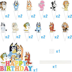 25pcs Bluey Cartoon Blue Dog Bingo Cake Decoration Top Happy Birthday For Cake Dessert Kids Birthday Party Photo Decorations