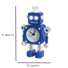 Robot Alarm Clock, Non-Ticking Wake-up Clock with Flashing Eye Lights and Rotating Arm, Gift for Kids, Funny Decoration for Desk